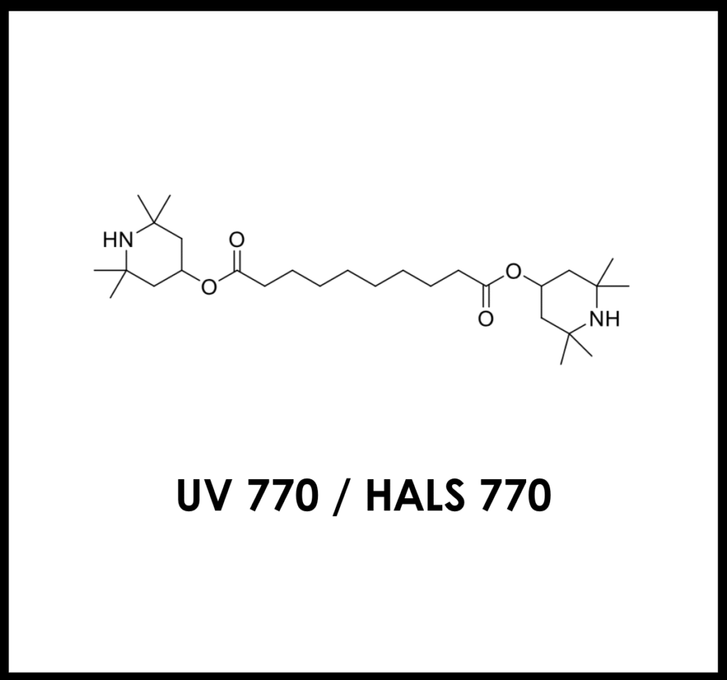HALS 770 works differently compared to UV absorbers. Instead of absorbing UV light, it functions through a free radical scavenging mechanism.