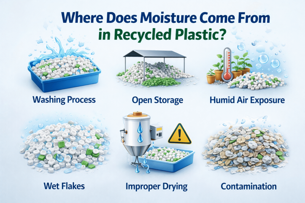 Moisture in recycled plastic is not just a minor processing issue — it is a profitability risk for manufacturers.