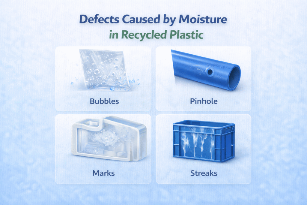 In the recycled plastic industry, moisture contamination is one of the most underestimated causes of processing defects. For B2B manufacturers, purchase managers, and plant operators, moisture-related issues directly impact product quality, machine efficiency, rejection rates, and profitability.